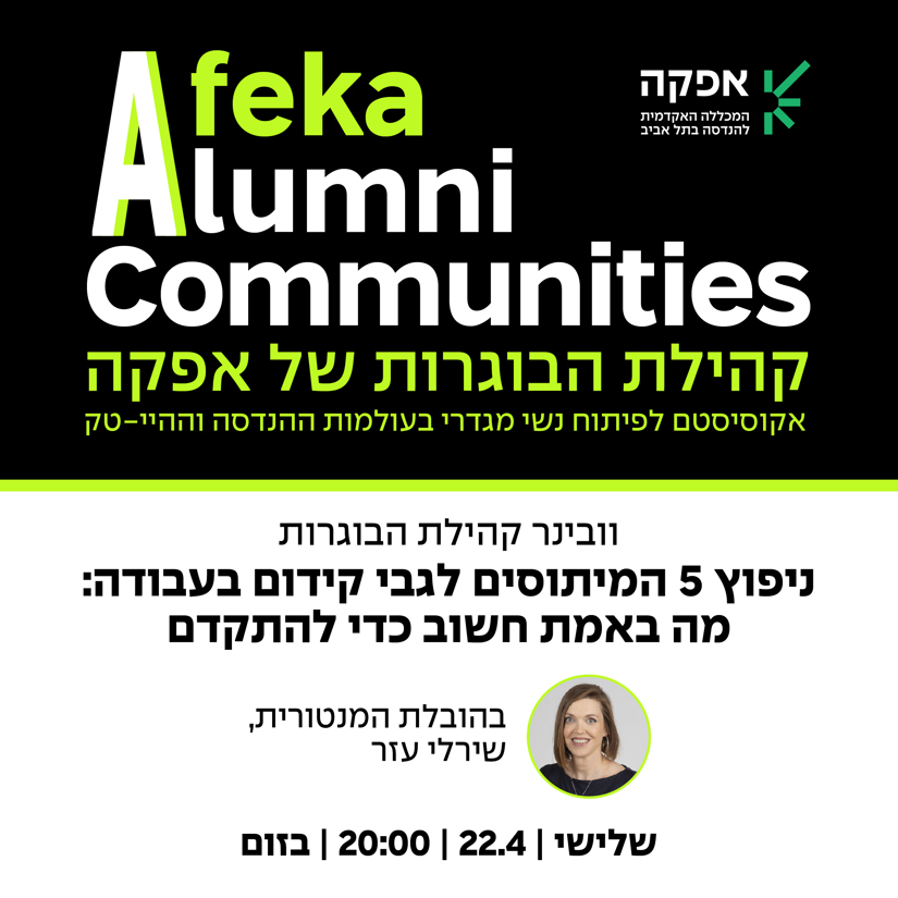 הוובינר יתקיים ביום שלישי, 22.4 בשעה 20:00 בזום, והוא מהווה חלק מהאקו-סיסטם של קהילת הבוגרות של אפקה – פלטפורמה שנועדה לפתח, לחבר ולקדם נשים שהשתלבו בתעשייה לאחר לימודיהן ההנדסיים.