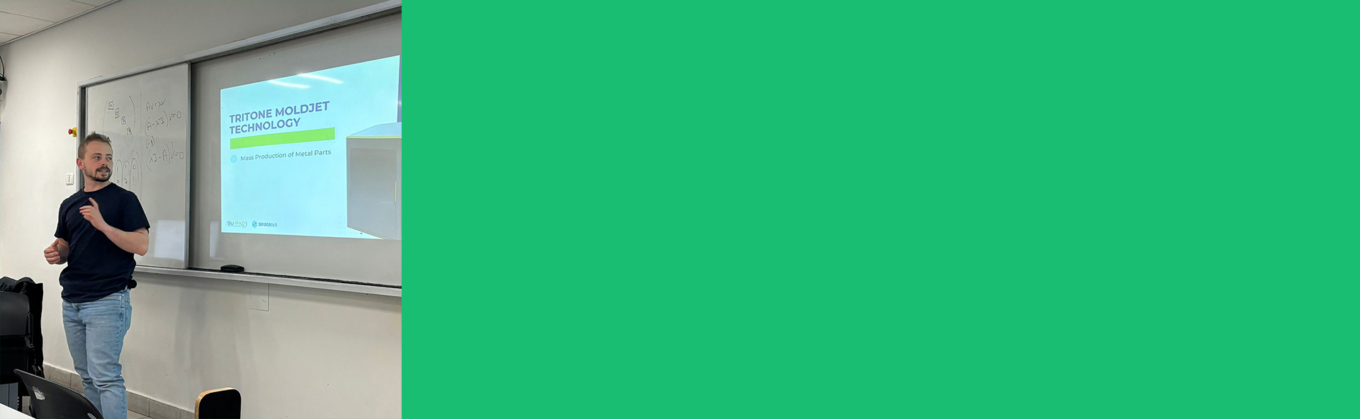 Tritone היא חברה ישראלית הפועלת בתחום הייצור בתוספת למתכת, ומפתחת טכנולוגיה המשלבת הדפסת מתכת עם תהליכי סינטור, במטרה לאפשר ייצור מדויק ויעיל של חלקי מתכת לשימושים תעשייתיים. הצגתו סיפקה נקודת מבט משלימה של סטודנט ומהנדס צעיר הפועל בתעשייה, והמחישה כיצד הידע הנרכש בקורס מיושם הלכה למעשה כבר במהלך הלימודים האקדמיים.