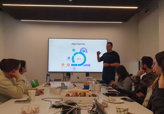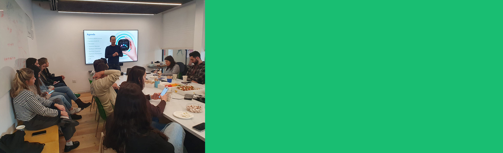 הביקור נפתח בהרצאה מרתקת של אייל בייקוב, העובד כ- VP Hardware & Innovation בחברה, אשר דיבר על הצרכים שהמכשיר עונה עליהם, על התייעלות בטיפול הקליני, כמו גם על האתגרים בנושא שימוש ביתי במכשיר על ידי בני משפחה שאינם בהכרח מיומנים והציג את הפתרונות לאתגרים הללו.