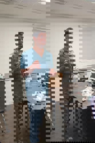 לאחר מכן, נפגשו עם פרופ' אילן שלום, CTO בחברת Cordio, לשיחה מרתקת על טכנולוגיה פורצת דרך המאפשרת לאבחן אי־ספיקת לב באמצעות ניתוח הקלטות דיבור בלבד. הסטודנטיות והסטודנטים למדו כיצד עיבוד שפה עם כלי AI הופכים לכלי אבחוני בעל משמעות קלינית.
