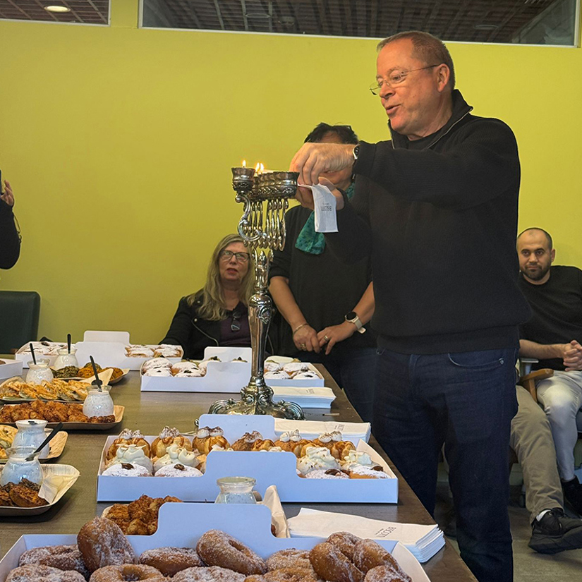 לכבוד חג האורות התכנס סגל אפקה להדלקת נר רביעי של חנוכה, באירוע חמים ומרגש ששם במרכז את הקהילה, השותפות והתקווה. חברי וחברות הסגל נפגשו להפוגה משותפת מהשגרה, לאכילת לביבות וסופגניות מיוחדות, ולרגעים קטנים של יחד, כאלה שמרכיבים את הרוח האנושית של קהילת אפקה.