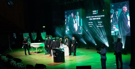 The ceremony was held on June 19 2024, in the midst of the Iron Swords war, after a six-month delay designed to allow student reservists to compete all their degree requirements and receive their diplomas together with their classmates. A crowd of 2500 family members, faculty and staff filled the Charles Bronfman auditorium at the Tel Aviv Culture Center in order to celebrate their achievement in an especially moving ceremony.
