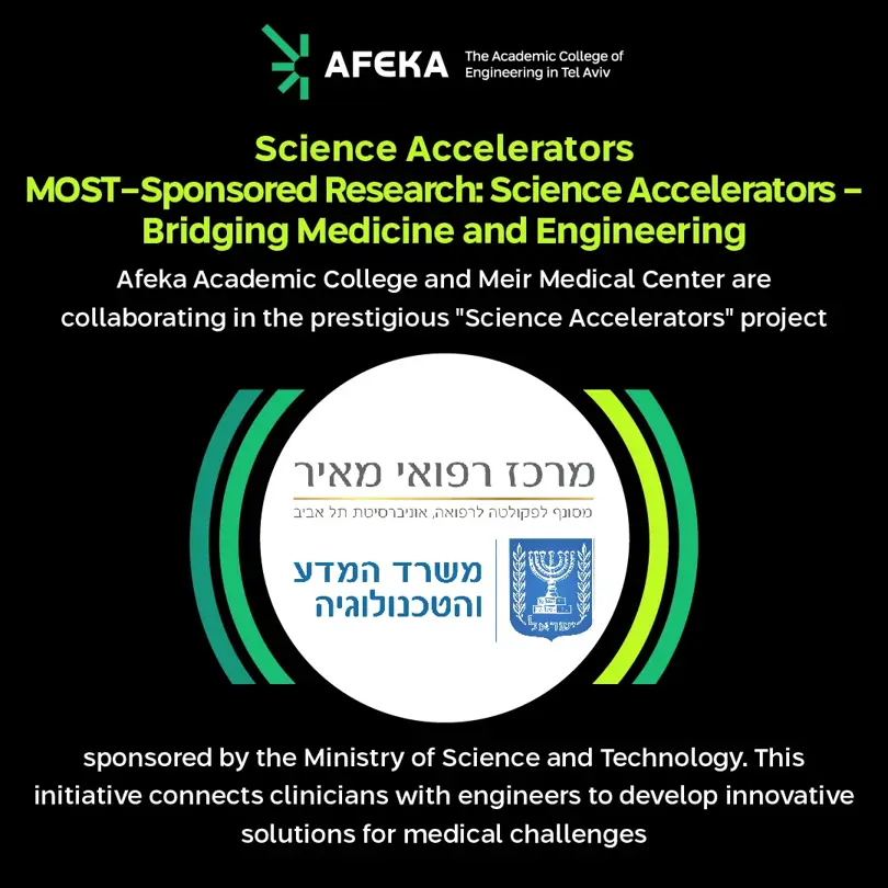 Afeka Academic College and Meir Medical Center are collaborating in the prestigious "Science Accelerators" project, sponsored by the Ministry of Science and Technology. This initiative connects clinicians with engineers to develop innovative solutions for medical challenges.