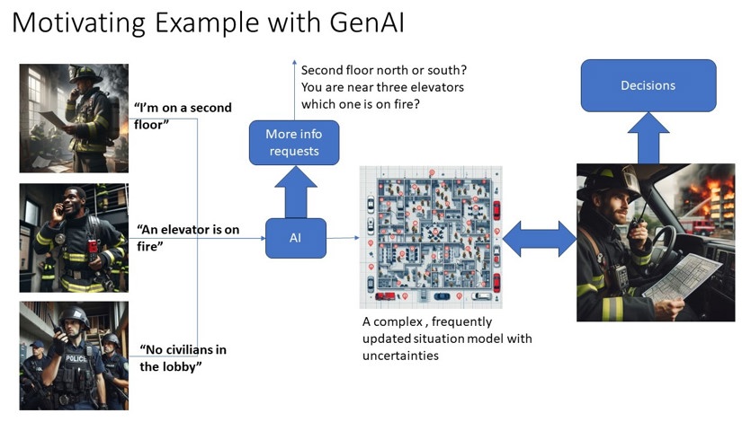 First responders, including firefighters, ER personnel, and police officers, require a comprehensive understanding of the situation when dealing with complex and dynamic events. This detailed situational awareness is crucial for effective decision-making and coordination during emergencies. One of the significant challenges they face is the localization of people, events, and objects within buildings, as traditional GPS technology is typically unavailable or unreliable in indoor environments. As a result, accurately identifying and tracking these critical elements becomes significantly more difficult. To overcome these challenges, commanding officers often rely heavily on voice communications from their team members to gather real-time information